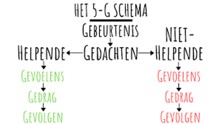- Anders denken: het GGGGG schema helpt om de moeilijke situatie of gebeurtenis te begrijpen en je gedachten, gevoel & gedrag en hun onderlinge samenhang op te merken én te beïnvloeden.