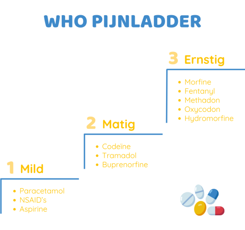 - Paracetamol (Dafalgan): veilig bij juiste dosis (3–4 g/dag), afgebroken door de lever. Hogere dosissen kunnen leverfalen en zelfs de dood veroorzaken. Vrij verkrijgbaar.